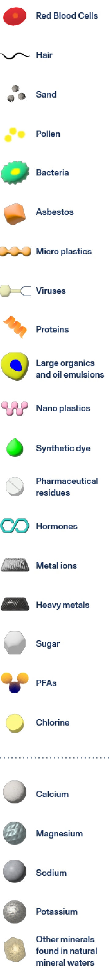Reduces | Sediment, rust, asbestos, sand, mud, humic substances, chlorine, chemicals, and other harmful organic compounds. Additionally, improves water taste |